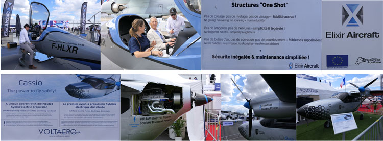 Au sol, nous avons noté les productions de "jeunes pousses" de la nouvelle Aquitaine : Cassio un avion hybride trimoteur de la société Voltaero (www.voltaero.aero) et un petit avion d'entrainement et de loisir de la société Elixir Aircraft (www.elixir-aircraft.com). Nous avons pu aussi admirer l'A350...