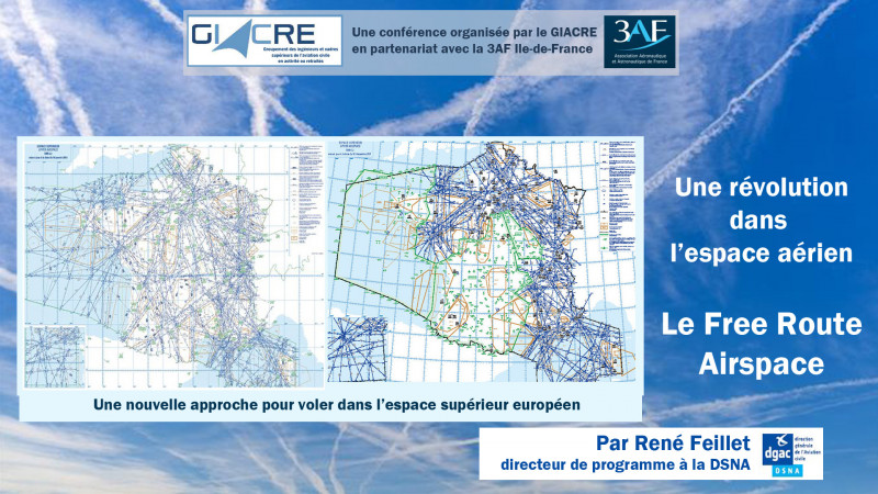 La conférence a été donnée le 18 novembre par René Feillet, directeur de programme "Free Route Airspace" à la Direction des Services de la Navigation Aérienne DSNA. (cliquez ici ou sur la vignette pour voir le replay de la conférence)